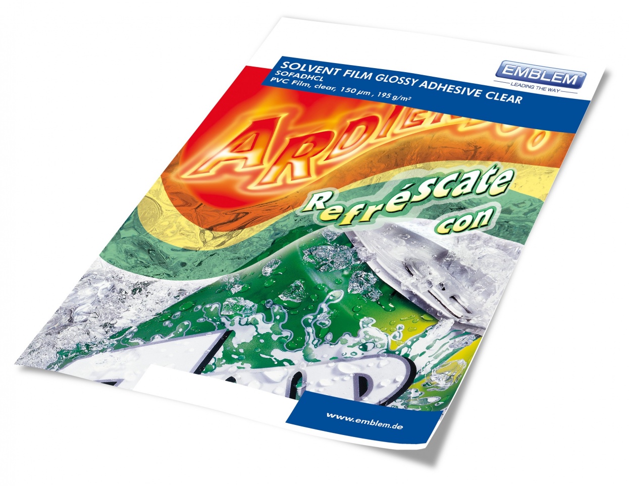 EMBLEM SOFADH is a white-opak glossy cling PVC-film. SOFADH has a cast-coated liner.